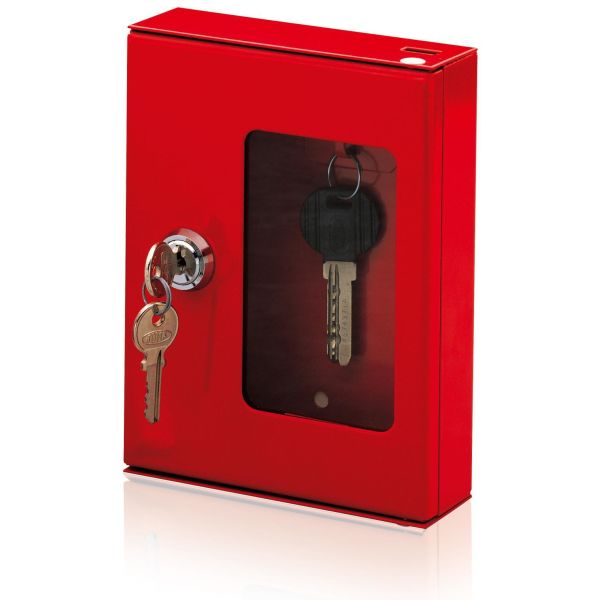 Rött lackerat stålskåp med glasruta. (Glasrutans mått:100mm x60mm) Låses med industricylinder som ingår.