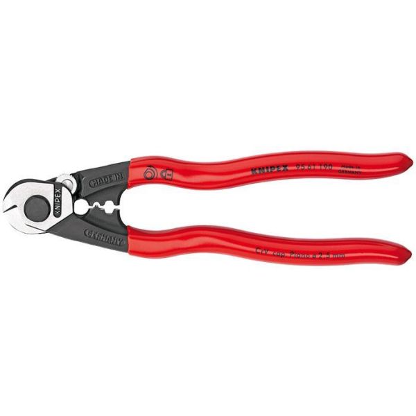 Wiresax med två pressprofiler för ändhylsor på bowdenhöljen och wirar.
