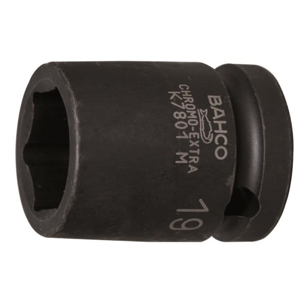 Krafthylsa med 1/2" fyrkant anslutningsfäste och sexkant gripöppning. Hylsan är svartoxiderad av smitt, fosfaterat Chromo Extra-material och har Dynamic Drive-profil.