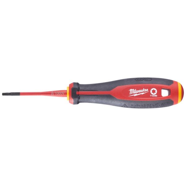 En skruvmejsel som är VDE-testad till 10 000 V och garanterad till 1000 V. Skruvmejseln har smal skaftdiameter för åtkomst till lågt liggande skruvapplikationer och bekvämt Tri-Lobe-handtag som är optimerat för maximal användarkomfort och applikationer med högt vridmoment.