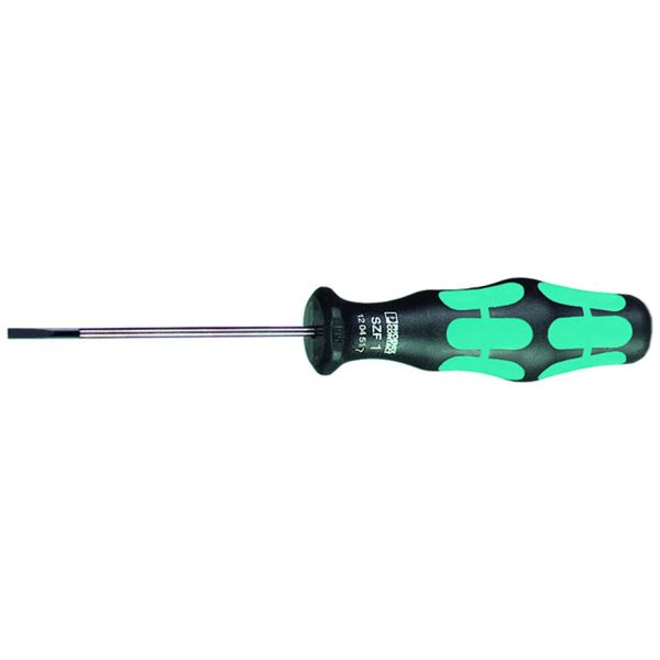 Manöververktyg för ST-plintar, även lämpligt som spårskruvmejsel. Med 2-komponenthandtag och avrullningsskydd.