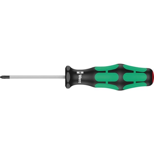 Skruvmejsel med krysspår och sexkantigt rullstopp. Ergonomiskt grepp med både hårda och mjuka greppzoner. Greppets utformning motverkar blåsor och valkar på händerna. Utrustad med färgkodning utifrån profil och storlek för enkelt och snabbt val av rätt verktyg.