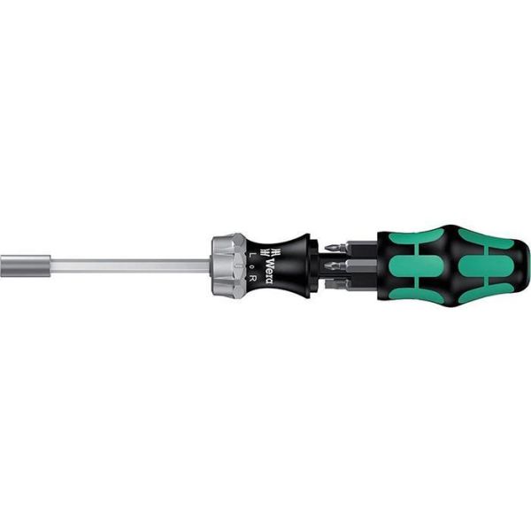 Bitsspärrmejsel med integrerat bitsmagasin i handtaget och spärrfunktion till höger/vänster. Mejseln har ett max vridmoment på upp till 50 Nm.