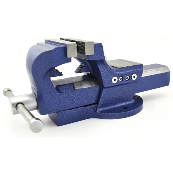 Skruvstycke för industri och hantverk, utrustat med fasta rörbackar under de plana backarna. Skruvstycket är sänksmitt av härdat stål och har justerbar slid samt härdat städ.