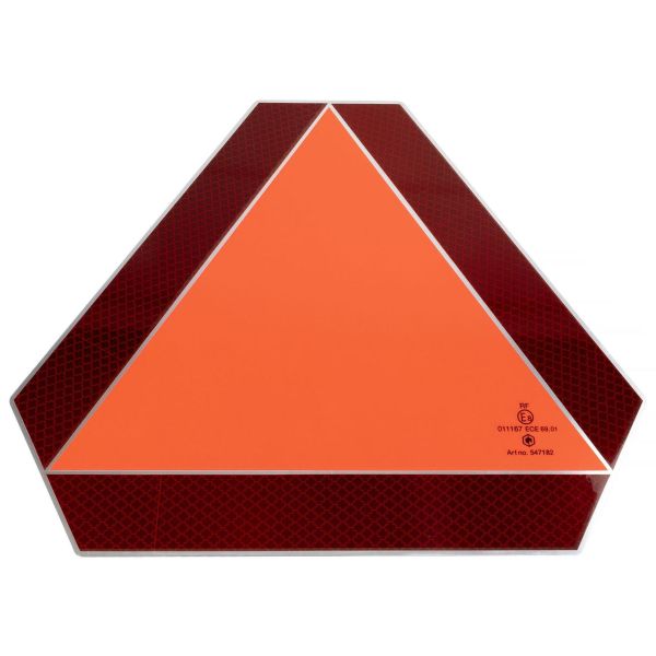 CJ 547182 Trafikskylt. LGF-skylt i plåt. För långsamtgående fordon som exempelvis traktorer, grävmaskiner, epa-traktorer, mopedbilar, vissa släpvagnar och fordon som bogserar.