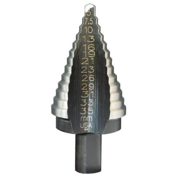 Stegborr från Irwin med 13 steg i storlekarna 5–35 mm. Stegborren är idealisk för hållborrning i tunna material till exempel mjukstål, koppar, mässing, aluminium, plexiglas, plast, trä och laminat. Försedd med självcentrerande spets samt en dubbelslipad egg med enkel spiral för spånavgång och borrning av helt runda hål med maximal stegreglering. Stegborren har även plana ytor på skaftet vilket förhindrar att borren slirar/snurrar i borrchucken.