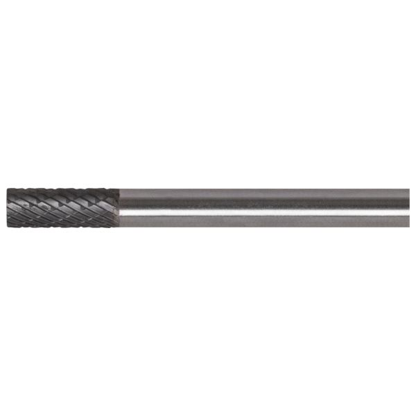 Cylindrisk roterande fil för planing och kantgradning. Filen är mediumtandad med spånbrytare och tillverkad i hårdmetall.