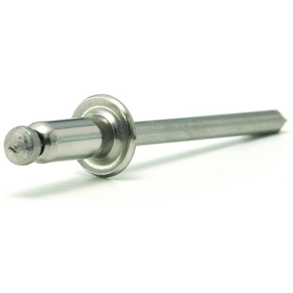 POP-nit med kullrigt huvud och splint av rostfritt stål. Standard POP-nit med ett stort greppområde och flera olika dimensioner.