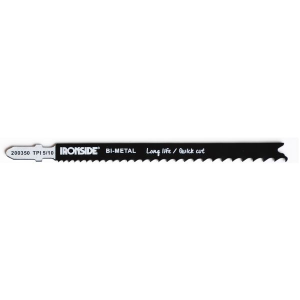 Ett 132x9x1,5 mm sticksågblad med högkvalitativ bimetall-tandning för snabba skär, för användning i trä, metall, icke-järnmetaller, aluminium och plast. Bladet passar rak, grov och precis sågning i mjuka träslag, spånskiva, konstruktionsvirke med spik.