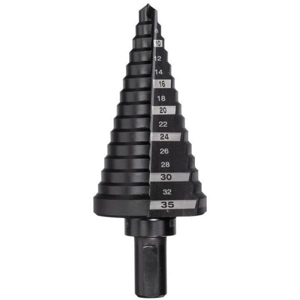 Milwaukee 48899335 är en stegborr med 14 steg - använd ett borr för att borra flera storlekar. Lämpar sig bl.a. för att förstora befintliga hål. Med laseretsad storleksguide för maximal hållbarhet.