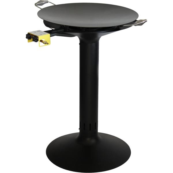 Pelarhäll för upp till 8 personer. En rejäl konstruktion med inbyggt vindskydd som står stadigt. Hällen är tillverkad av högklassigt varmvalsat stål och levereras med emaljerad yta, klar att användas. Dom stilrena handtagen i kromat fjäderstål håller sig svalare än hällen. Gasolbrännaren ger snabbt värme som enkelt justeras efter behov.
