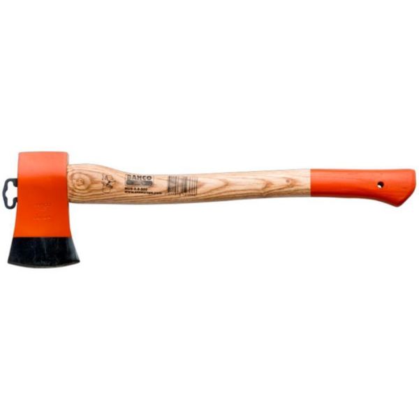 Hobbyyxa på 500 mm av härdat högkvalitativt stål. För camping, trädgårdsarbete och tillfälliga gallringsarbeten. Yxan har ett böjt skaft i askträ som är fixerat med en kolfiberförstärkt kil.