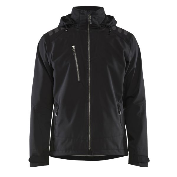 Flexibel och mångsidig softshelljacka med justerbar huva. Har mörka reflexer på axlarna och baksida samt ordentliga dragkedjor.